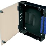 The AM-FWM is a compact, cost-effective wall-mount enclosure for controlled environments, supporting cross-connect or splice management for up to 12 fibers. It offers top and bottom cable entry, accepts various AM adapter plates, and features a durable powder-coated aluminum body with a smoked LEXAN polycarbonate door.